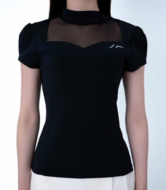 ハートネック・シースルーハーフスリーブTシャツ(Black)