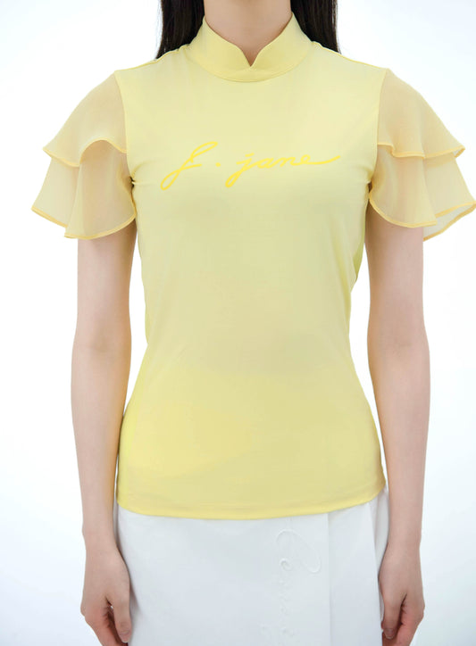 シフォンスリーブ ハイネックTシャツ (Lemon)