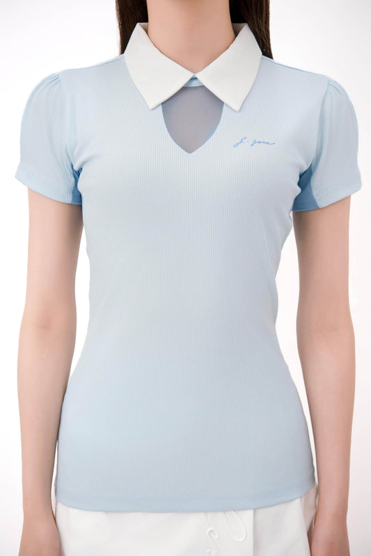 シースルーネック・ハーフスリーブTシャツ(SkyBlue)